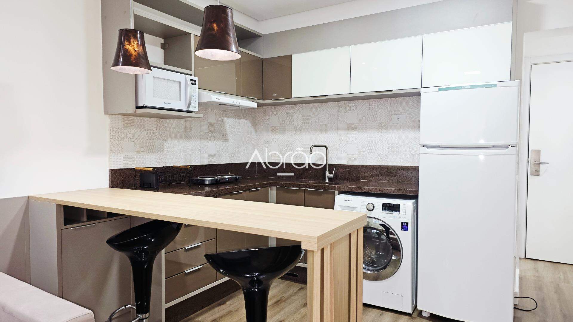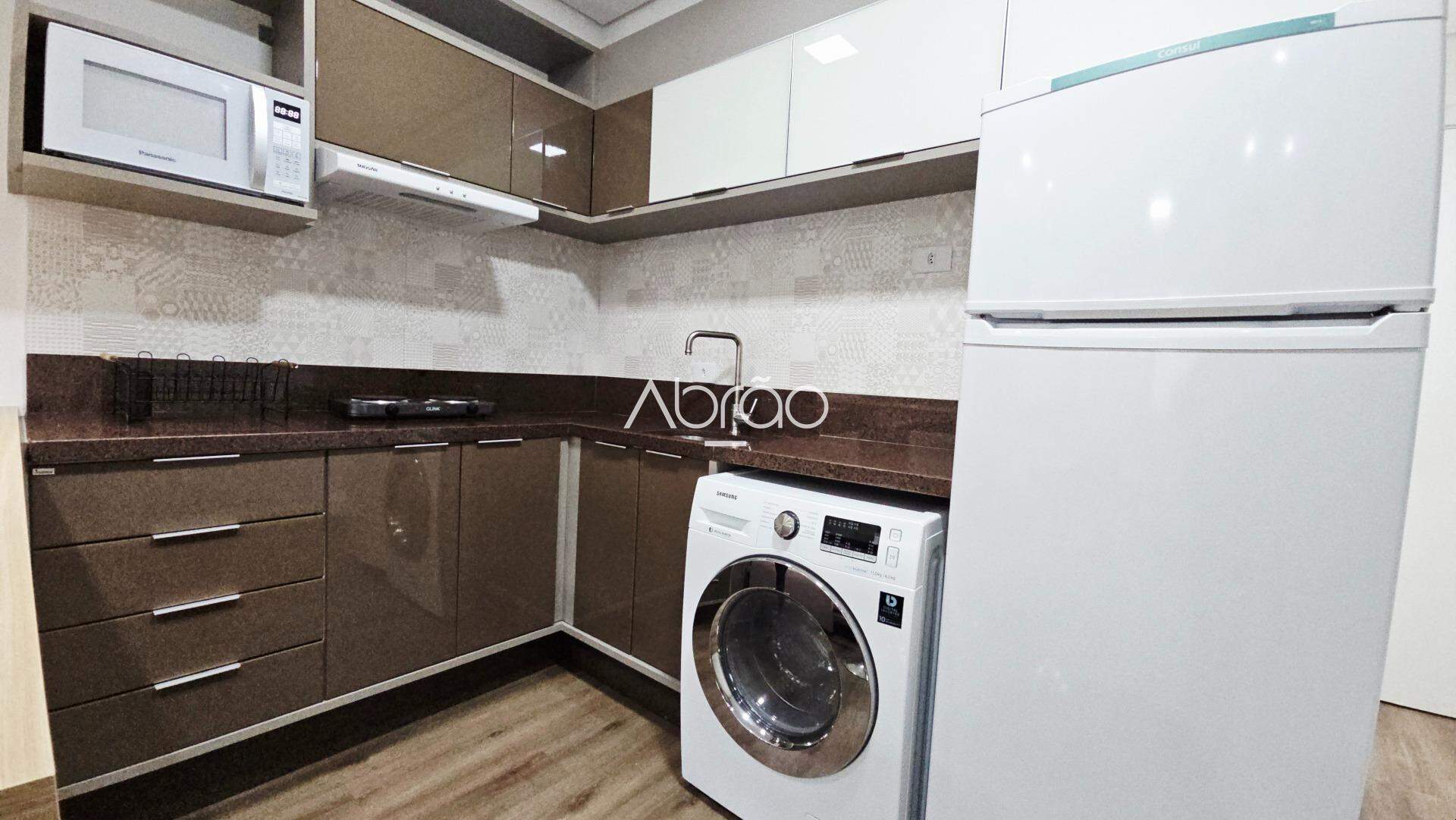 - Cozinha Completa: Geladeira, cooktop, micro-ondas e máquina lava e seca