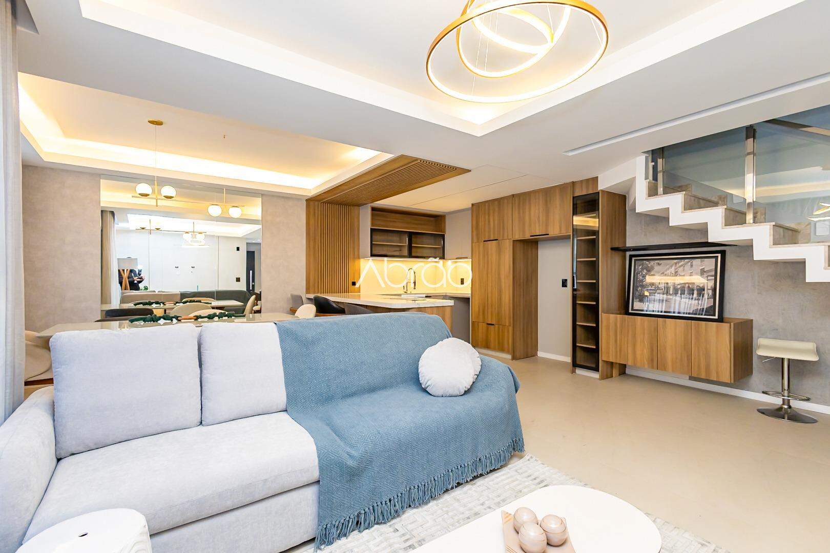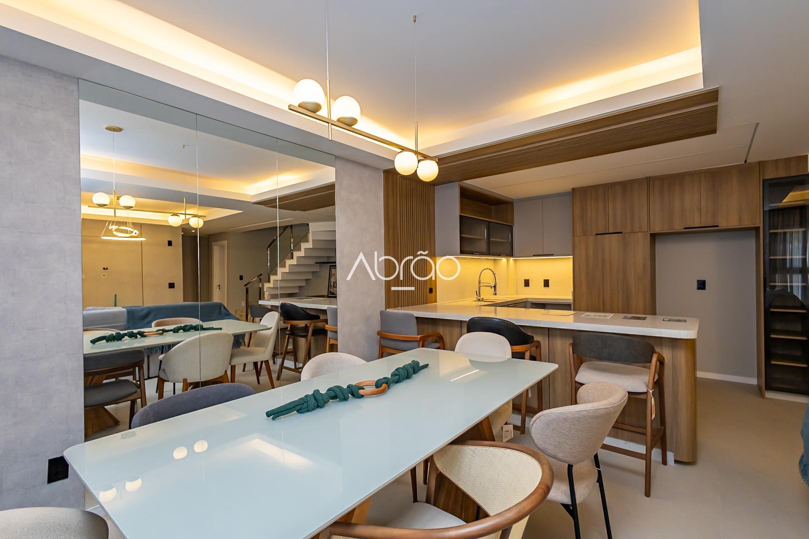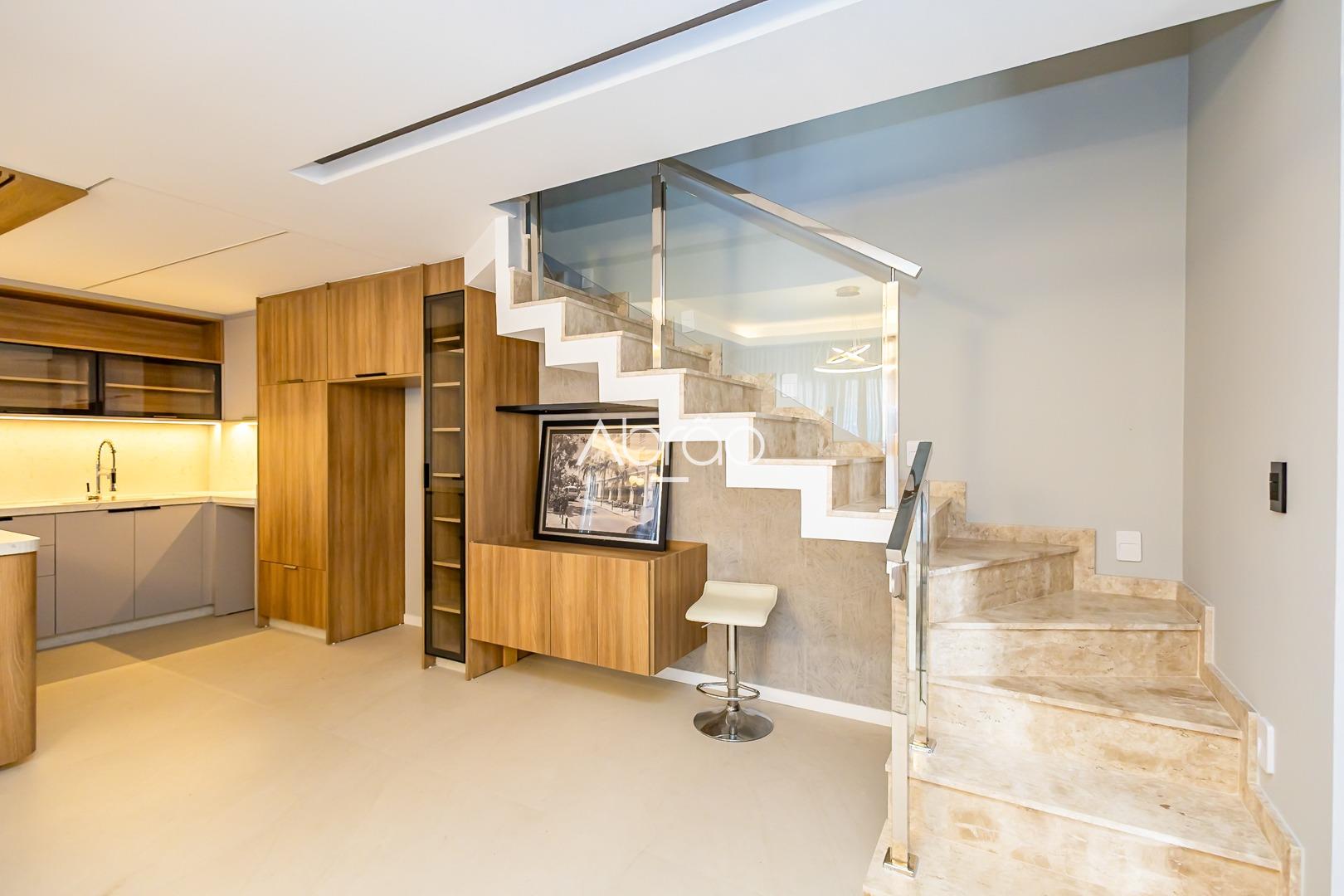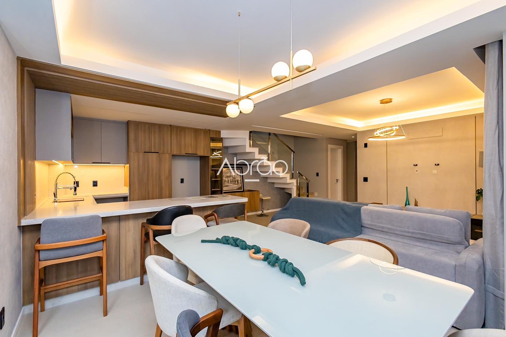 Sobrado mobiliado novo para alugar em Santa Felicidade, Curitiba. 3 quartos (1 suíte com closet), sala decorada, automação Alexa e 2 vagas de garagem. Condomínio moderno, seguro e em excelente localização. Valor inclui condomínio, IPTU, Wi-Fi e segurança.