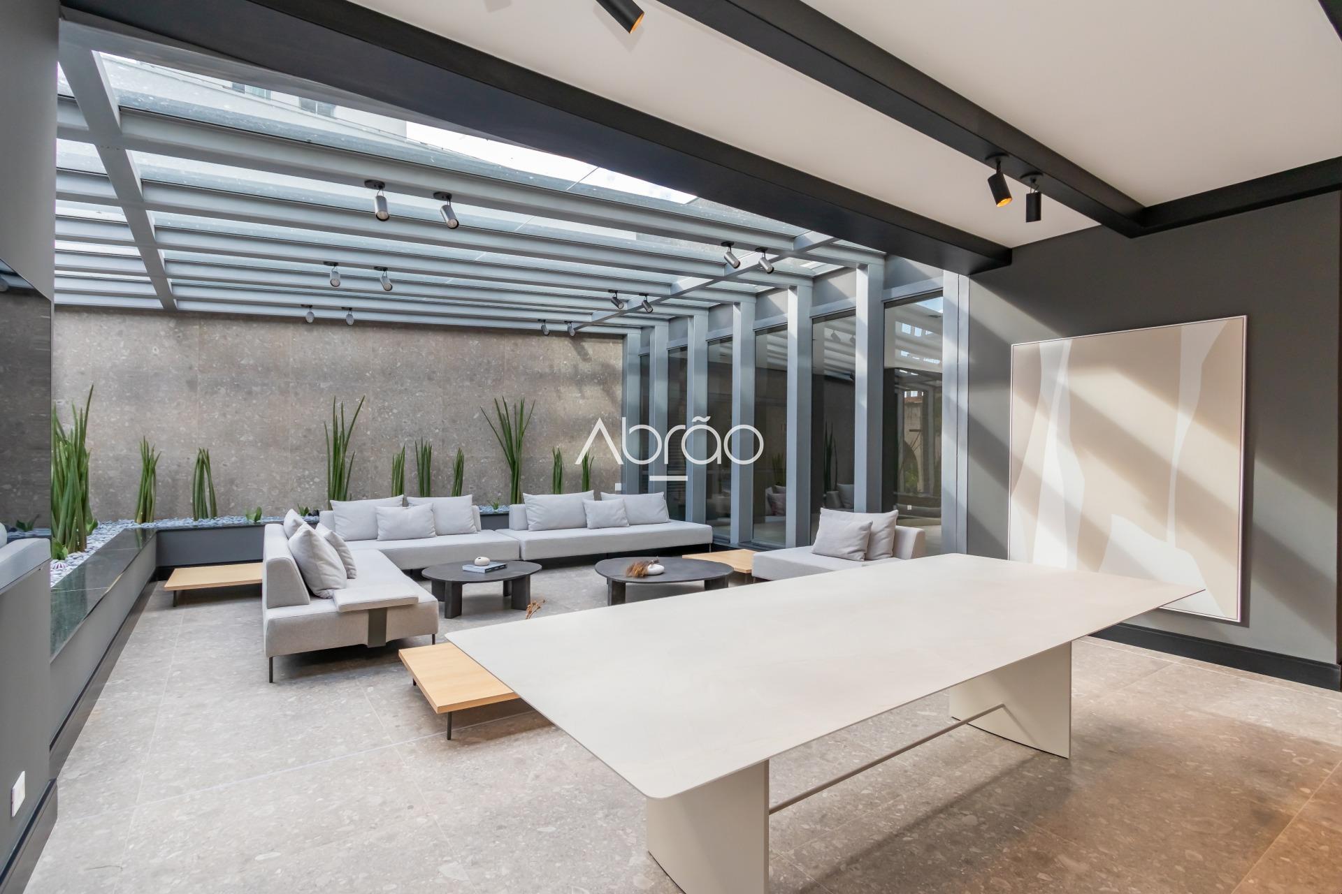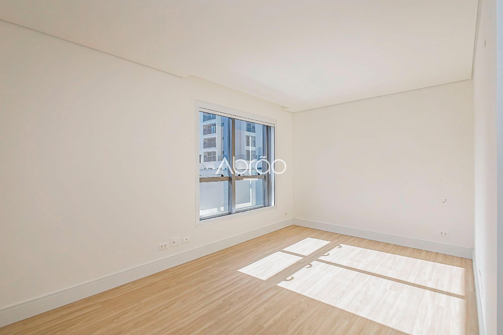 Os acabamentos reforçam o padrão do imóvel, com piso em porcelanato nas áreas sociais e piso laminado nas suítes, além de isolamento acústico e infraestrutura pronta para ar-condicionado.