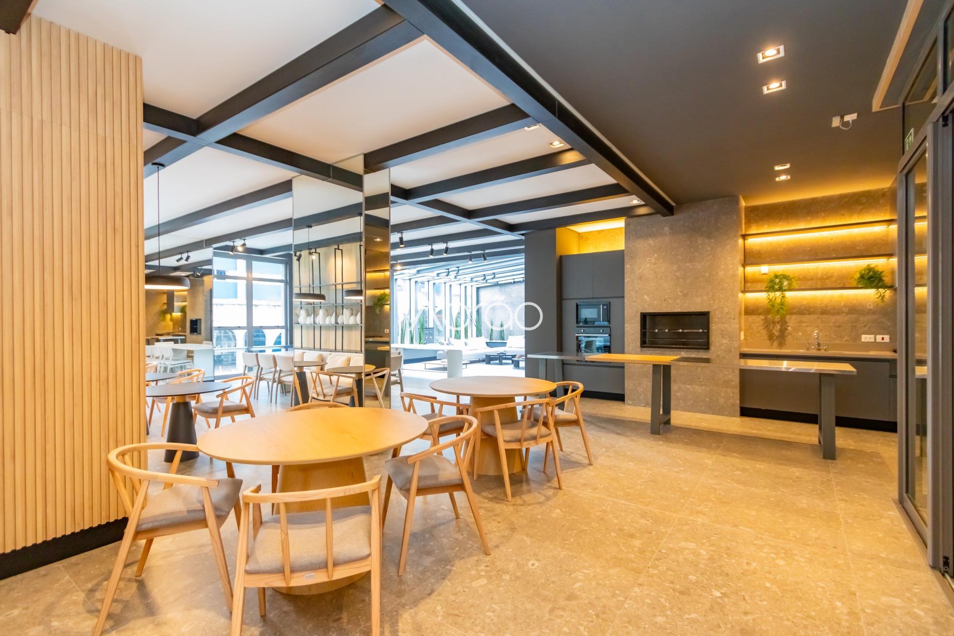 Com 138 m² de área privativa, o imóvel possui uma planta moderna e bem distribuída, com living integrado à cozinha e à sacada com churrasqueira a carvão, proporcionando amplitude e integração para o dia a dia e momentos de lazer.