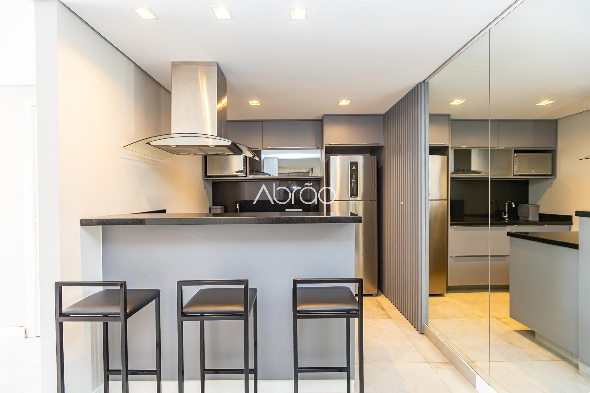 - Cozinha equipada com geladeira e cooktop