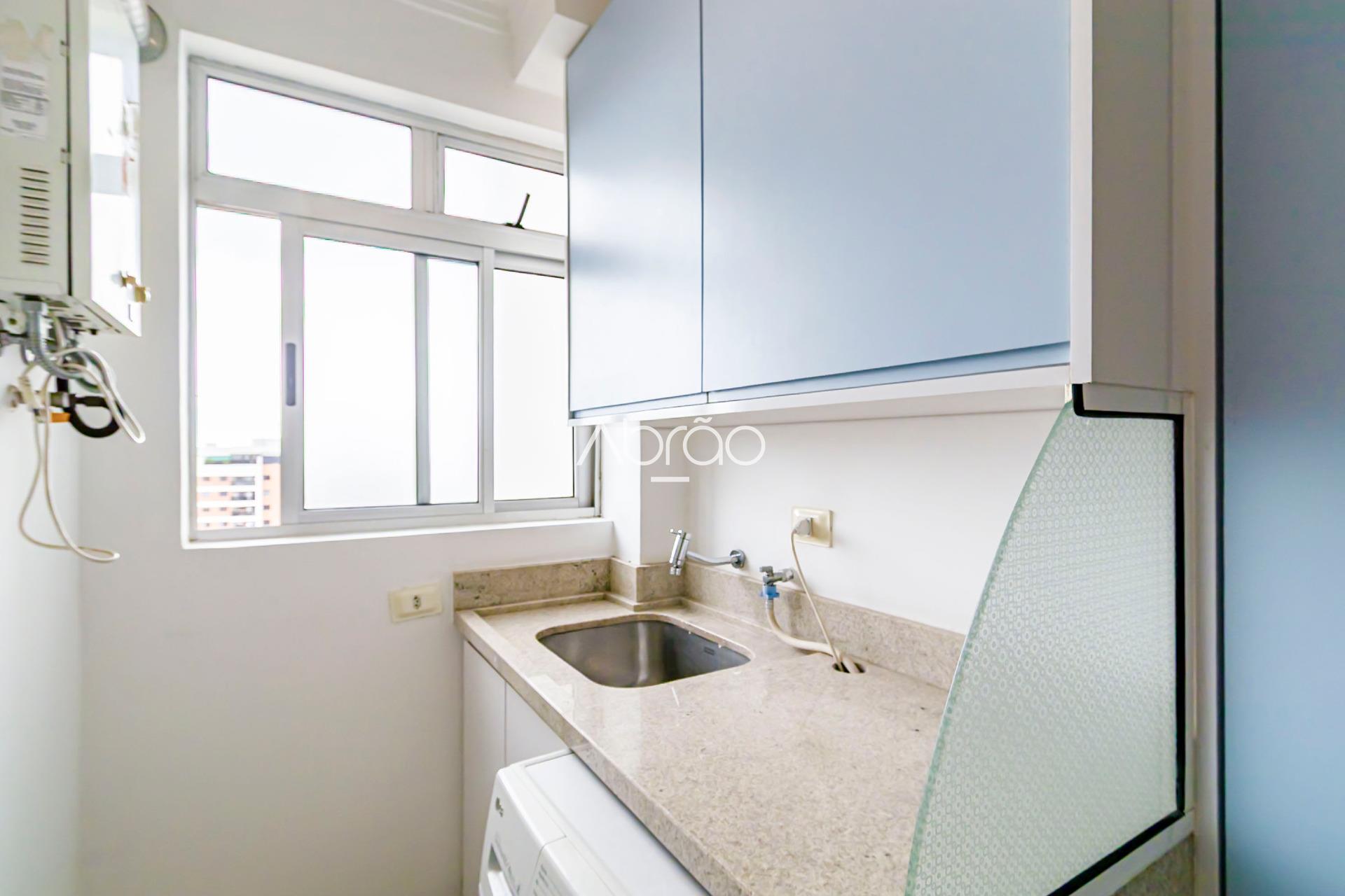 - Lavanderia com armários e máquina lava e seca